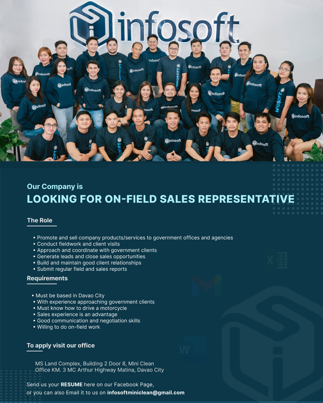 We are looking for an On-Field Sales Representative based in Davao City to promote and sell company products and services to government offices and ag...